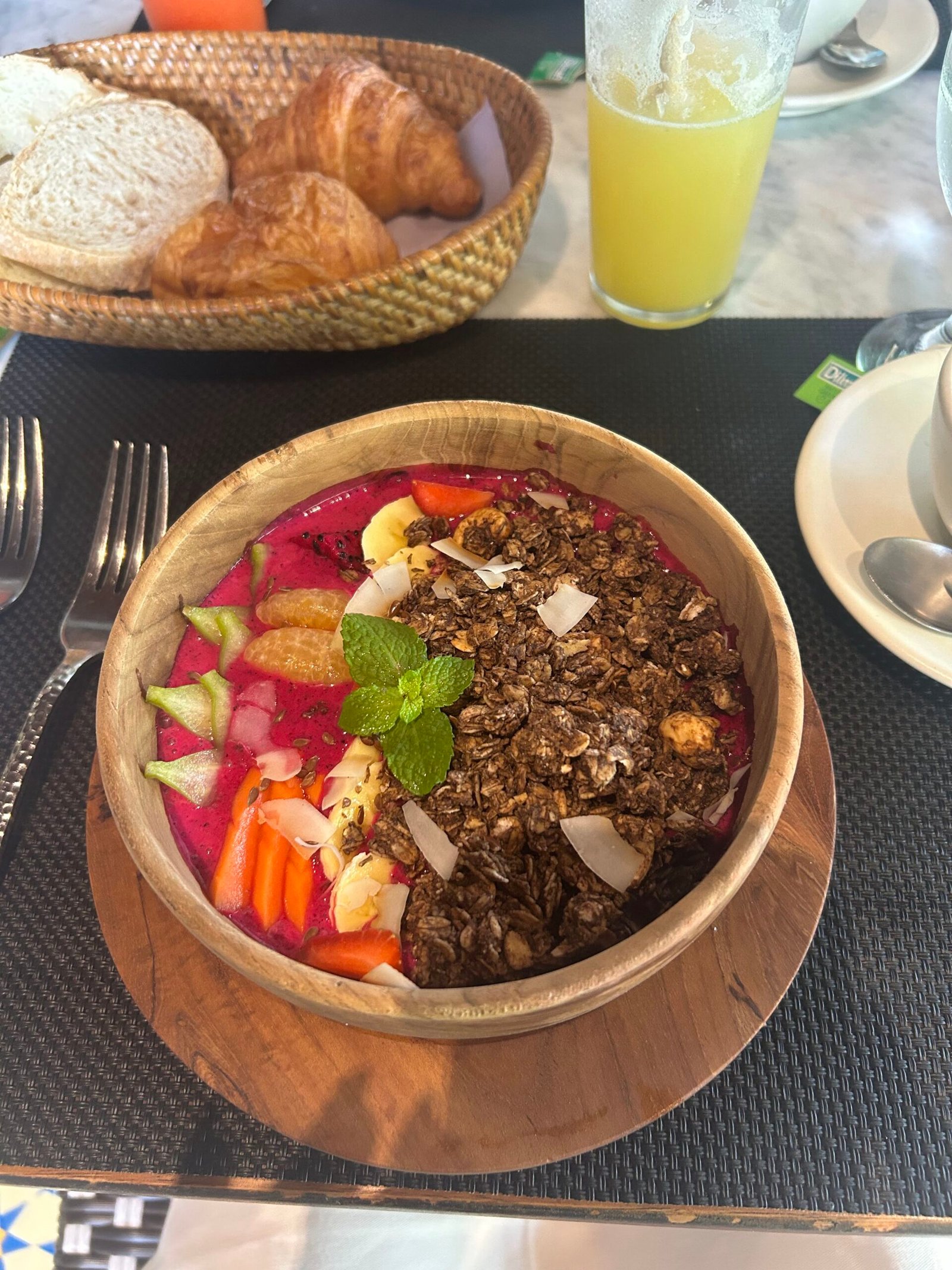 Bali’s beauty is layered—lush jungles, sacred temples, and unforgettable moments. Favorite highlights? Wandering the Tegalalang Rice Terrace, watching cheeky monkeys take over the Sacred Monkey Forest (one even jumped on someone’s back!), and dining at Koral, Bali’s first underwater aquarium restaurant—absolutely magical and worth booking in advance. While we heard about “Bali belly,” we had no issues. The streets, especially in Ubud, were narrow and buzzing with motorbikes—chaotic but part of the charm. I also discovered mangosteen tea, which quickly became my favorite and a must-bring souvenir.